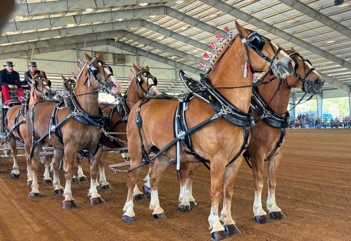 OCALA, FL (352today.com) – The Grandview Invitational, a premier event set showcasing the Clydesdale, Percheron, and Belgian breeds, thundered into the covered arena at Florida Horse Park with up to 100 of these iconic one-ton horses. Those majestic beasts accompanied 15 top-tier hitch wagons, making it a stunning display of coordinated equine prowess. The event was hosted by owners of the Grandview Clydesdale Farm and Tours, Shannon and Karen Cobbs, and celebrates a family legacy steeped in tradition.